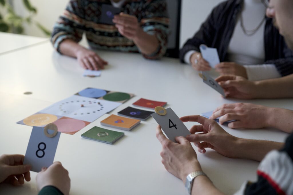 1. Alle Teilnehmenden ziehen geheim eine Zahlenkarte (1–10), die bestimmt, wie zirkulär die Lösung sein soll.